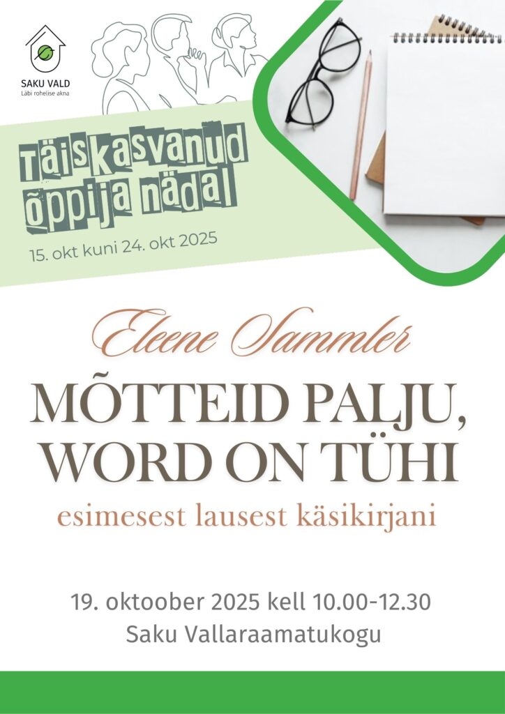 Töötoas just nende küsimustega tegelemegi. Käsitleme, kuidas vaatlemise ja märkamise kaudu lugudeni jõuda. Mõtestame, kuidas kirjutada kirjutamise pärast ja miks see oluline on ning kuidas sel viisil jõuda käsikirjani. Võtame aega ka kirjutamiseks, et mõista, mis on just Sinu südameasi ja kuidas sellega seonduvate mõtetega käsikirjani jõuda.